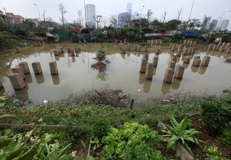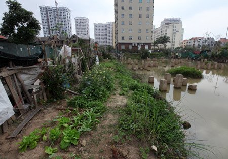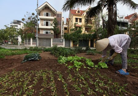Hanoians now take advantage of every inch of unused land in residential areas, parks, ongoing construction projects, etc. to plant vegetables.
