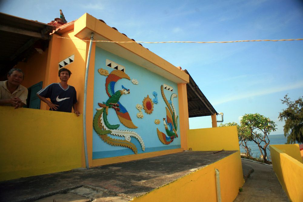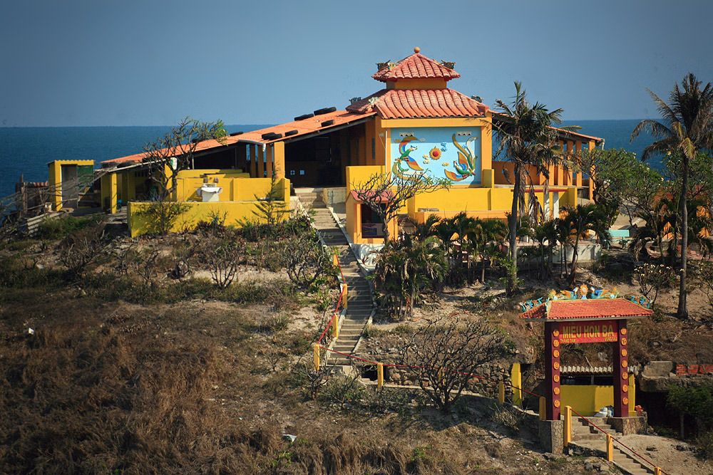 The temple was built in 1881 by a follower named Ho Quang Minh. From the foot of the island to the temple runs a winding road with solid three-step at its end.