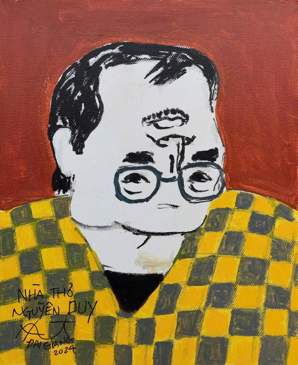 For Nguyen Dai Giang, inverted art is not merely a reflection of reality but an exploration of artistic thought deeply rooted in philosophy. His works carry strong elements of Vietnamese culture, featuring themes such as Ha Long Bay, Hoc Mon – Saigon, Smoking a Bamboo Pipe, and The Young Woman. Many of his pieces also reimagine renowned Vietnamese literary and artistic figures, including Nguyen Ngoc Tu, Nguyen Duy, Tran Tien, and Chu Lai, through fresh and symbolic perspectives.