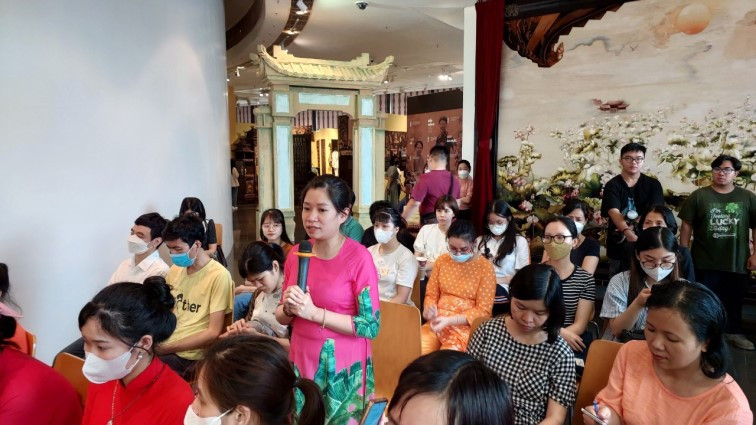 As Linh's skill grows, she confidently helps newbies, accepting harder collages. She can even stand before the crowd and tell her story without fear.