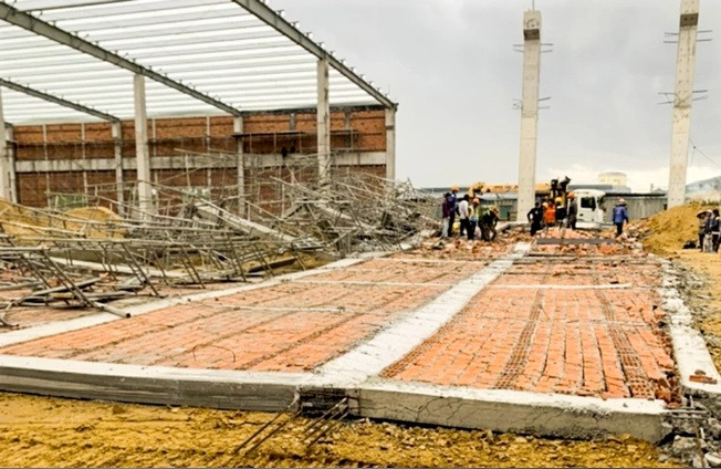 The labour accident happened at around 4.30pm at Taiwanese factory Savvy Seafood at Nhon Hoa industrial park in Binh Dinh province, which is under construction for the second phase.