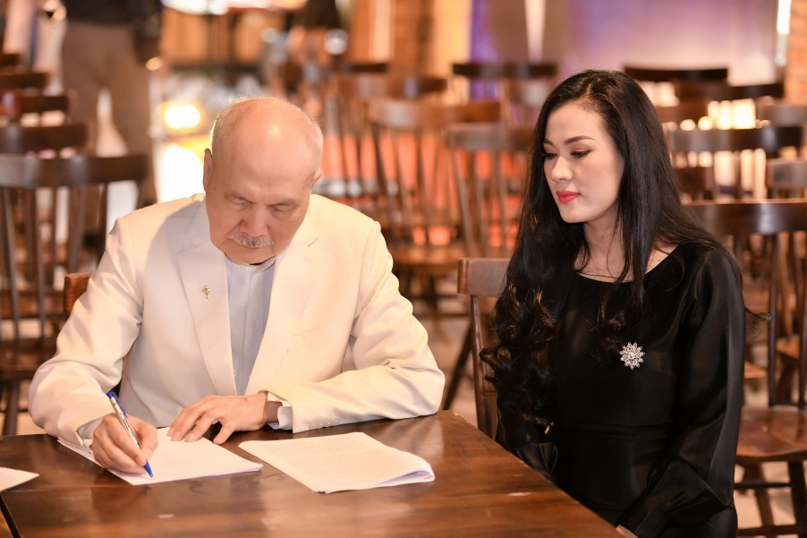 Earlier, on a trip back to Vietnam, he met singer Ngoc Cham, and after hearing her talk about her plans to support disadvantaged artists or young artistic talents, he was very appreciative and wanted to join her. He always considered singer Ngoc Cham as his daughter, who accompanied him to many charity activities in Vietnam.