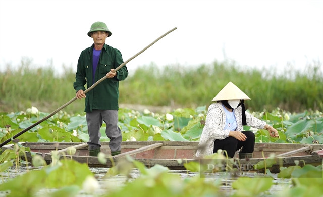 Nguyễn Công Xuân (left) and his wife Đỗ Thị Hoa visit Hạc Hải Lagoon every day to make sure wild birds are safe. Photo đaioanket.vn |