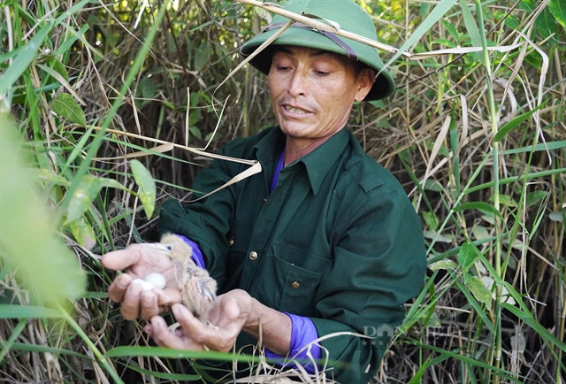 Farmer Nguyễn Công Xuân in Xuân Hòa Village, Lệ Thủy District of Quảng Bình Province, takes care of a baby bird and eggs when needed. He says saving the birds is his life-long duty. Photo đaiđoanket.vn |