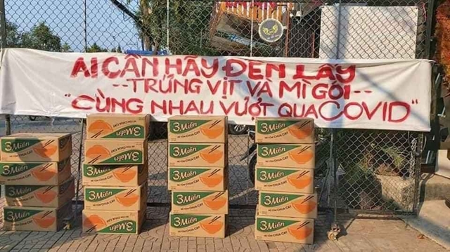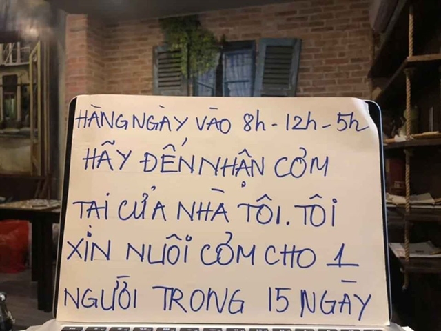 A Faceook page called Saigon Corona Support Network in HCM City has encouraged people to cook more food than usual, and each person would provide 3 free meals to one person in need in the next 15 days by putting up a sign outside their house.