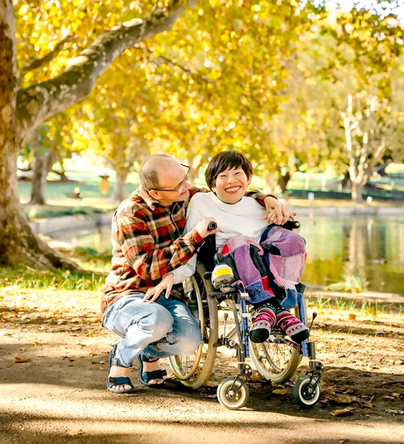 "We respect each other’s differences. When we share those things in common, it’s easy to communicate and live together. He is kind-hearted, and takes care of others, which is like my job. I like to develop the community of disabled people, and support other people with more difficulties."