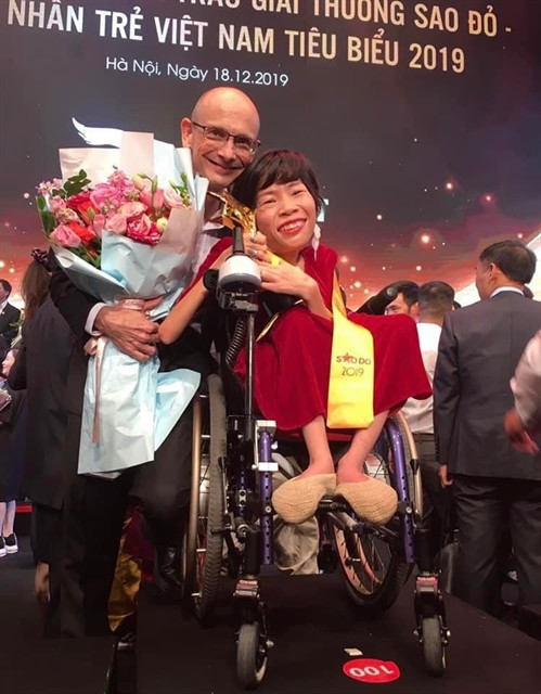 Vân suffers from spinal muscular atrophy and needs a wheelchair to get around.