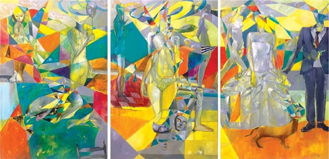| A triptych titled Hạnh Phúc Mong Manh (Fragile Happiness) by Nguyễn Hồng Đức. Photo courtesy of the artists |