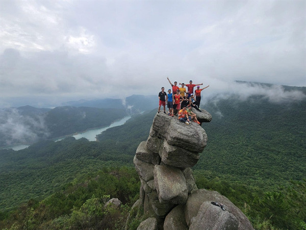 The rock top at Da Chong Mountain in Bang Ca Commune, Hoanh Bo District, Quang Ninh Province, is surprising to young tourists.