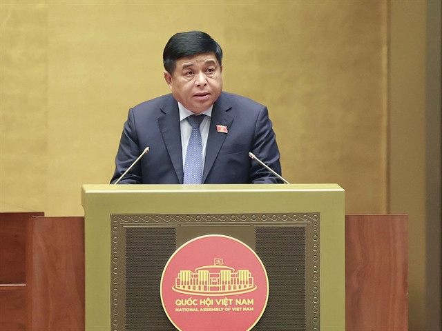 | Minister of Planning and Investment Nguyễn Chí Dũng presents the five groups of pilot policies at the National Assembly meeting on Friday. —VNA/VNS Photo Doãn Tấn |