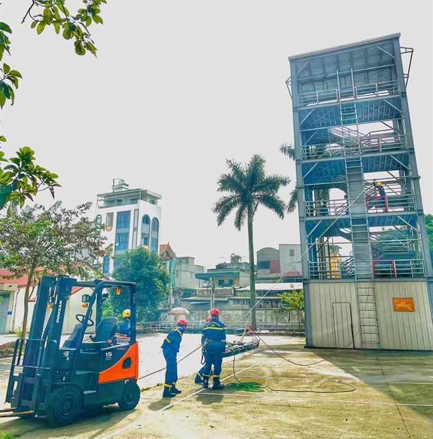 | Firefighters at a fire drill in the Police Department of Fire Fighting, Prevention and Rescue in Hà Nội on Monday morning.— VNS Photo Nguyễn Hằng |