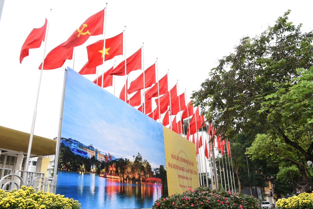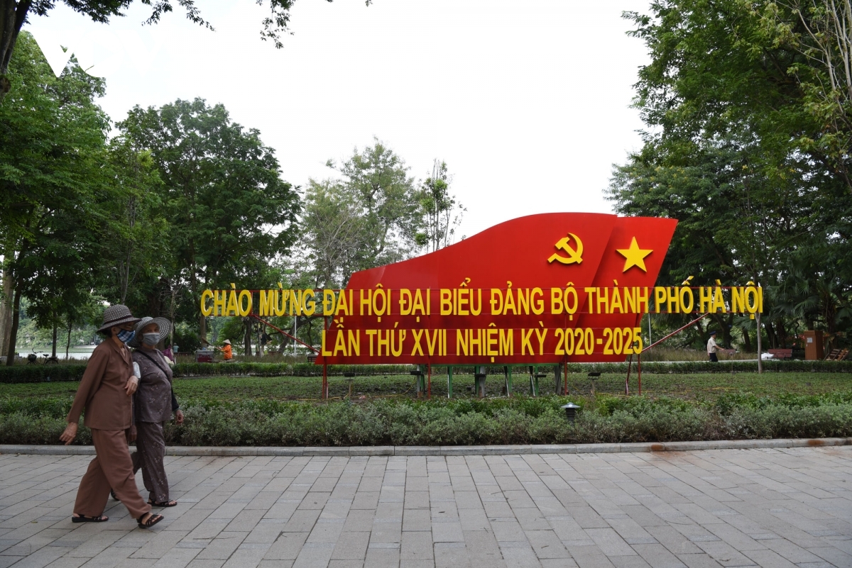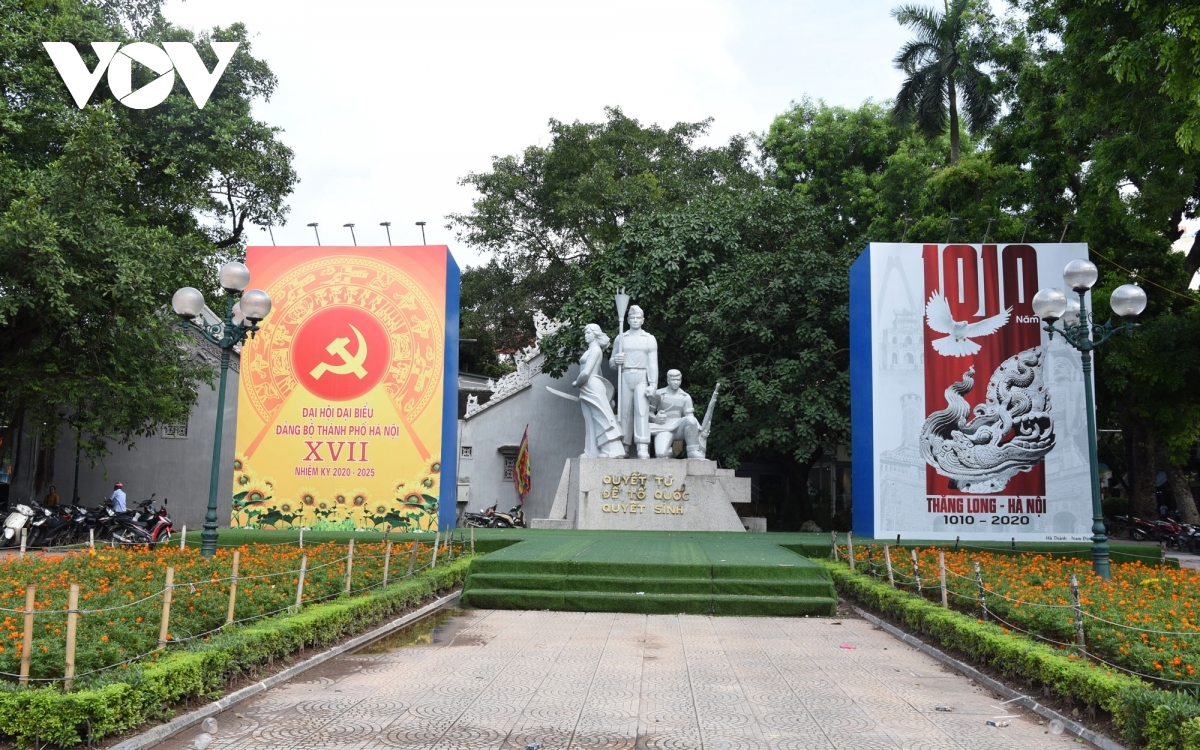 A large-sized banner can be seen next to the banks of Ho Guom, also known as Sword lake, ahead of the 17th municipal Party Congress for the 2020-2025 term.