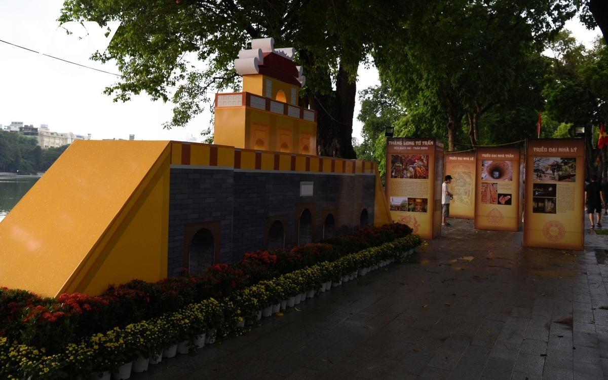 A model featuring a small recreation of the old Thang Long royal citadel appears next to Ho Guom.