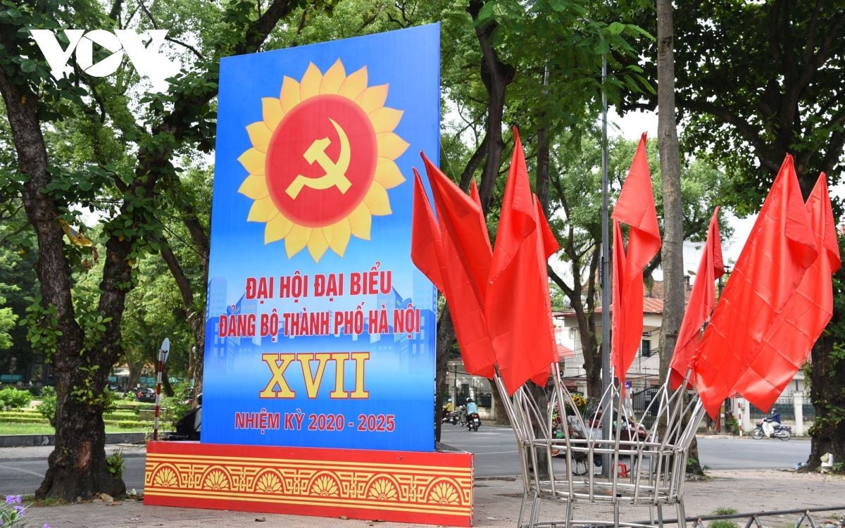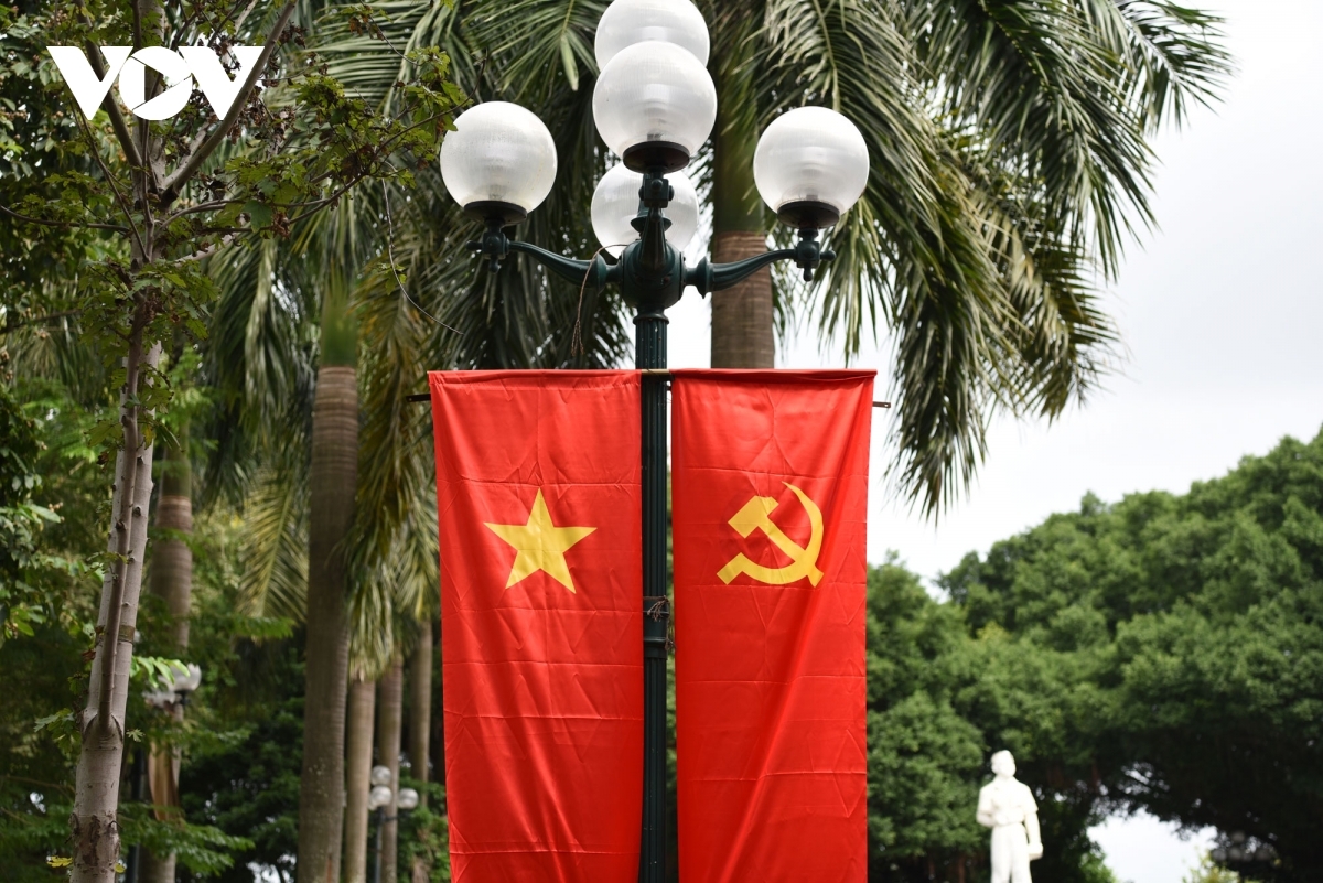 Plenty of major streets throughout Hanoi, including Le Hong Phong street, can be seen bearing incredible decorations, including national flags, colourful flowers, lights, and numerous banners in order to mark the capital's 17th Party Congress for the 2020-2025 term.