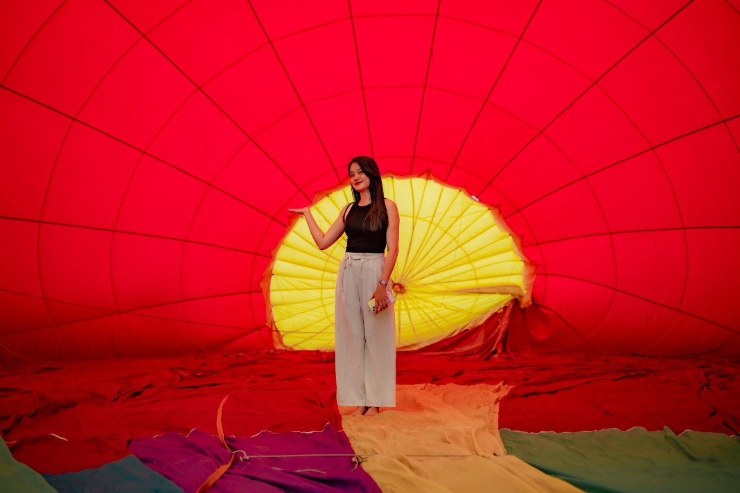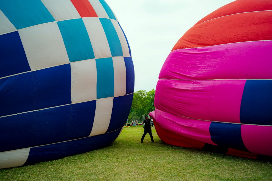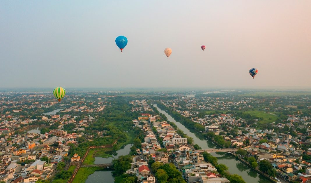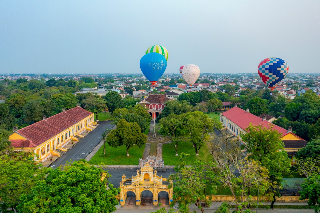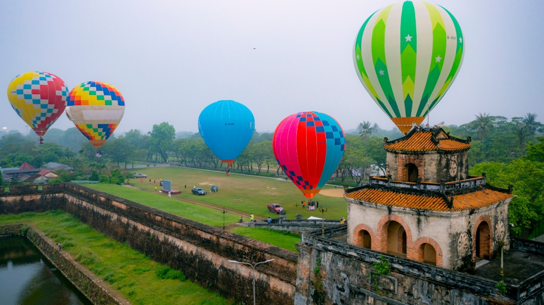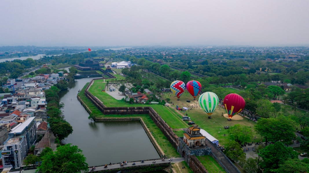Balloons fly over the privy council. This is one of the famous scenic spots of Hue, apart from the Huong River, Ngu Mountain, Vong Canh Hill, etc., that guests can enjoy from the balloonsSports commentator Ta Bien Cuong – one of the thousands of tourists – joins the festivalA balloon is being prepared for takeoffEach balloon can carry two to three guests. They can fly for 45 minutes at an altitude of 300-500 metersGuests experience the tethered hot air balloon ride within 5 minutes at an altitude of 300-500 metersA young lady poses for a photo inside a balloonBalloons fly over Hue’s Citadel. This year’s hot-air balloon festival is a highlight, kicking off the summer tourism season of Hue as well as responding to the Week of Hue Festival 2023A guest enjoys flying in a hot-air balloonDong Ba Gate in the east of Hue’s Citadel is seen from the balloonsThe festival expects to meet the needs of domestic and foreign tourists to experience Hue’s cultural heritage from a different perspective, said Nguyen Van Phuc, director of Thua Thien Hue Department of TourismA kid poses with a balloonAnother kid and her father watch the balloonsThe festival attracts many young guests