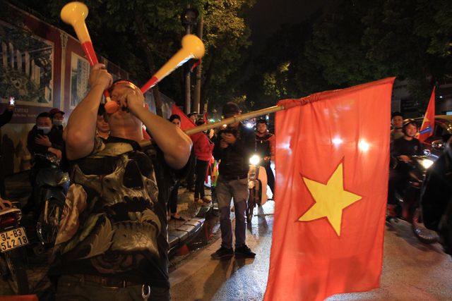 To mark the national team’s achievement, people flocked into many main streets in Hanoi even at the late night.