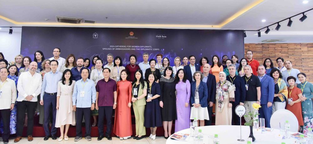 The participants are Vietnamese diplomats, former diplomats and their spouses, and international diplomats and their spouses, including Minister of Foreign Affairs Bui Thanh Son and his wife Vu Thi Bich Ngoc, who is the Honorable Chairwomen of the ASEAN Women's Community in Hanoi (AWCH).