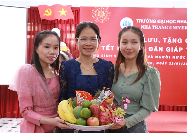 Another Lao student, Vongsay Phetmany, said she was impressed by the atmosphere before Tết. During the cultural programme held at Nha Trang University, she joined in decorating the fruit tray and playing traditional games.