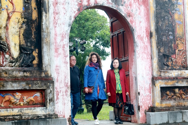 | Dr Amandine Dabat (middle) in her recent trip in Huế. VNS Photo Nhật Linh |