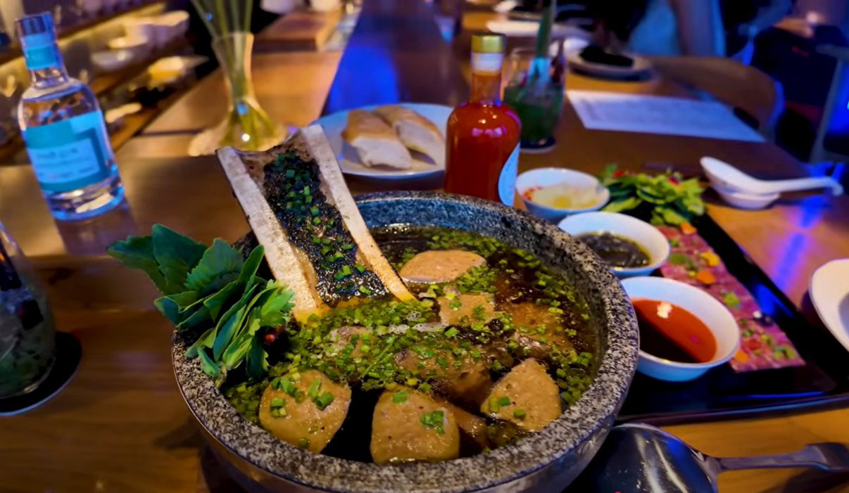 Later, Romain visited a Michelin-starred restaurant on Ton That Dam Street (Ben Thanh ward), which specialises in pho and its creative reinterpretations. Here, diners must book in advance, and the dish is served as part of a full-course pho experience for two.