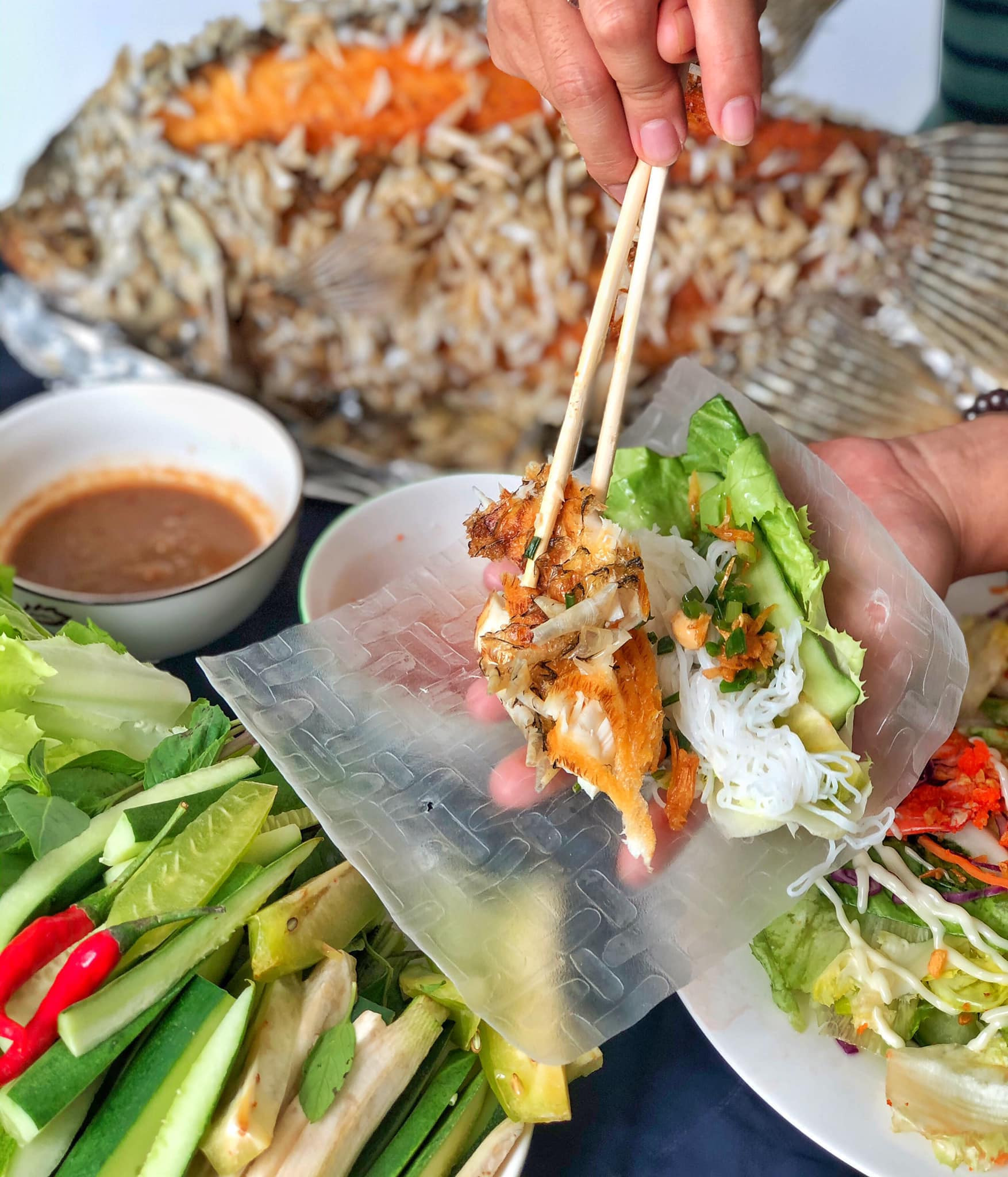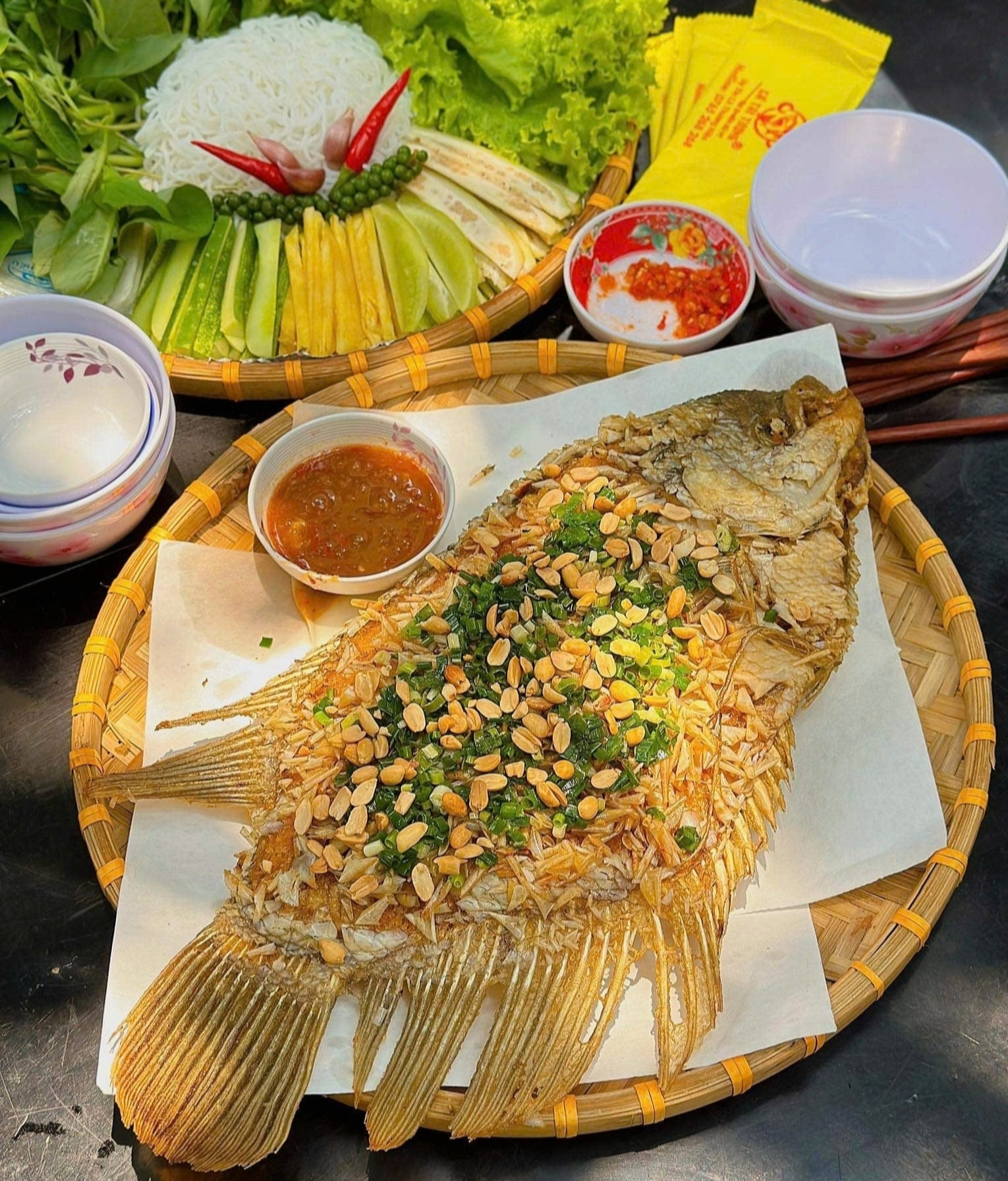 "The fried giant snakehead fish, served with fresh herbs, has a refreshing taste, and even after eating a lot, it doesn’t feel greasy. Because it helps with digestion and provides relief from heat, this dish is especially loved during the New Year. Every Tet, whenever I have guests from far away, I always buy this dish to serve and share with everyone," she expressed.