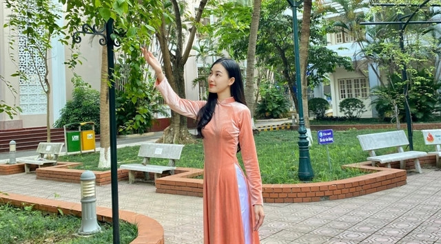 | Xanita wears the Vietnamese traditional dress áo dài given by her Vietnamese adoptive mother. — Photo courtesy of Xanita Savengxok. |