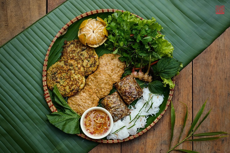 | A variety of Hanoi specialties like cha ruoi (sandworm omelet), cha com (young sticky rice sausage) or spring rolls are always available at the restaurant of Luklak Vietnamese Cuisine |