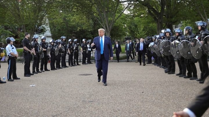 The archbishop also condemned the forceful clearing of protesters outside the White House on Monday to allow Mr Trump to visit a church where he held a Bible in front of gathered media.