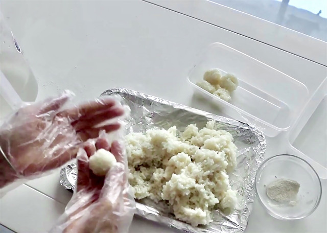 Cơm rượu from the south is meticulously shaped into balls. VNS Photo Gia Linh |