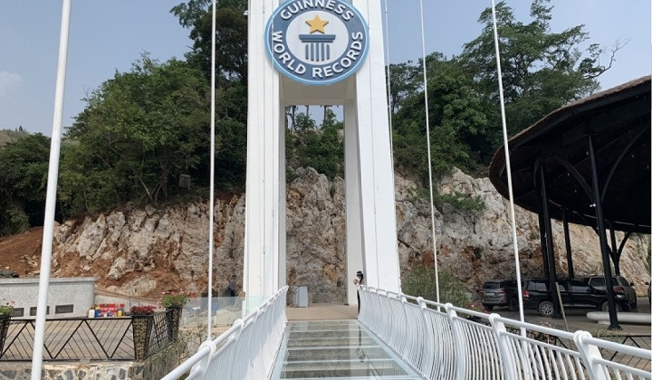 The 630m Bach Long pedestrian bridge spans two peaks and is suspended 150 metres above the rainforest. It breaks the current world record held in China by more than 100 metres.