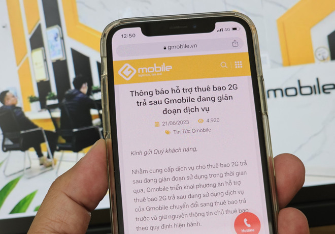 Nguyen Anh D, a VietNamNet reader from Hai Phong, complained that he has not been able to use Gmobile service since March 2023. When he accessed the website of the network operator, he read a notice about the telecom carrier’s support to 2G post-paid subscribers suffering from service interruption.
