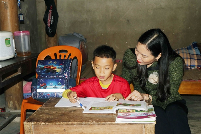 | A Hương Khê Women's Union member tutors 10-year-old Nguyễn Công Phát. According to statistics of the Hương Khê District Women's Union, nearly 360 orphaned children are facing difficult circumstances in the area. — VNA/VNS Photo Hữu Quyết |