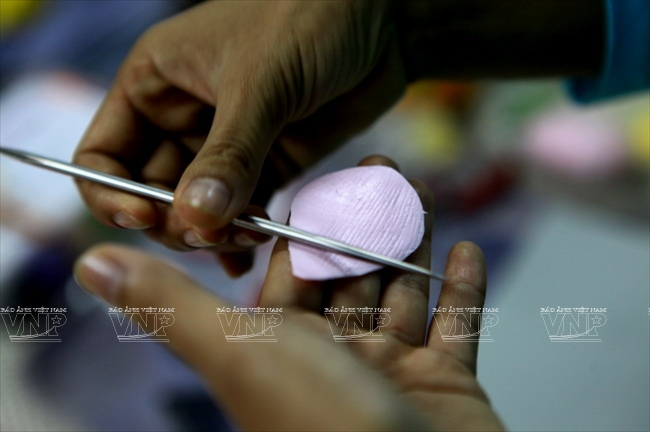 Nguyen Thi Thanh, a trainer at Bees Shop acknowledged that the most challenging process is to select colours to make flowers and arrange them.
