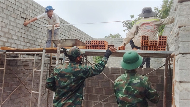 | Soldiers help residents in Gia Lai Province build homes as part of a programme to eliminate temporary and dilapidated housing. — VNA/VNS Photo Hồng Điệp |