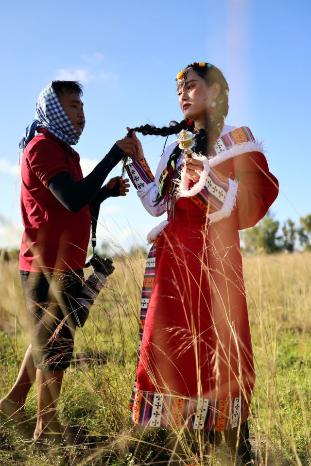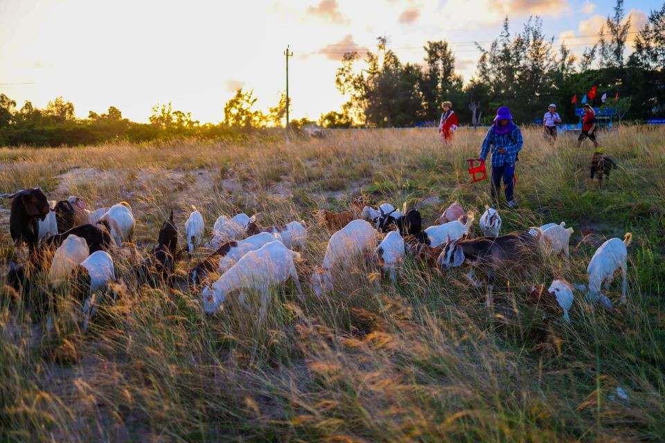 Abandoned lands adorned with lush lawns create a captivating natural sceneThe grass transitions from vibrant yellow to rich orange and fiery red, resembling a landscape on fireHerds of goats graze freely on this untouched grasslandHerds of goats graze freely on this untouched grasslandA girl dressed as a prairie dweller poses for photos with the grazing goatsThe golden-hued grasslands captivate photographers and passers-by, providing endless photo opportunitiesBeautiful clusters of lawns add to the visual allure of the landscapeA father and his son from Danang City enjoy a leisurely walk in this natural paradiseSituated adjacent to the road leading to the ancient town of Hoi An, the grasslands attract a steady stream of visitorsThe setting sun enhances the beauty and brilliance of the lawnsEven foreign tourists find themselves inspired by the natural beauty on displayPhotographer Nguyen Xuan Anh regards the grasslands as a unique gift from nature to people, with the strikingly beautiful photos sure to promote Hoi An as a tourist destination