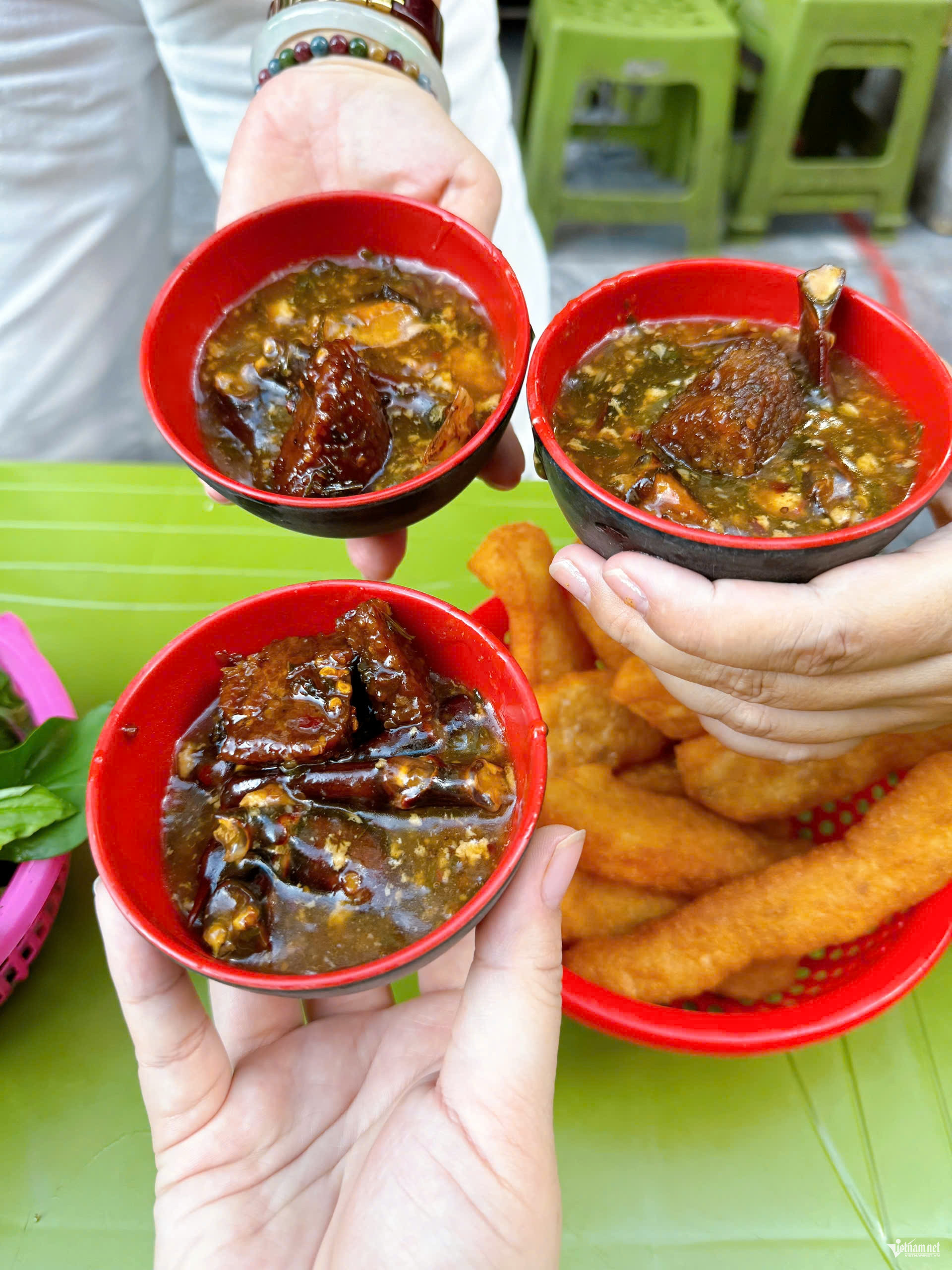 Horseshoe crab (sam): In Ha Long, horseshoe crab is prepared in various ways such as stir-fried sweet and sour, made into patties, or served with roe. It is a high-end ingredient not always readily available. You can try it at Ba Ty’s eatery, Sam Quang Yen, or the street food area in Ha Long Market 1 during the afternoon. However, since horseshoe crab is cooling in nature, it may not be suitable for people with sensitive digestion or allergies.