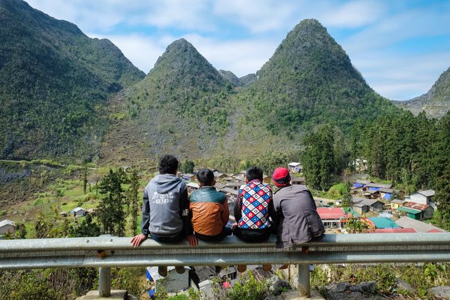 The Happiness Road, stretching nearly 200 kilometers, connects the northern mountainous city of Ha Giang with the other four districts in Ha Giang Province, including Dong Van, Quan Ba, Yen Minh and Meo Vac.">