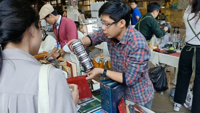 In a busy corner of the market dedicated to young creators, Trần Trung Hiếu and his colleagues from the Sao Bắc Bookbinding Workshop delicately cherish their hand-made book covers adorned with intricate gold patterns to introduce to potential buyers.