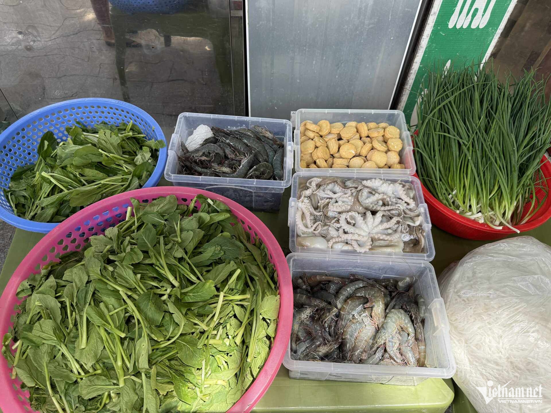 On the morning of August 29, Doan Van Son, 32, was busy receiving nearly 100 kilograms of ingredients: 50 kg of rice noodles, 10 kg of octopus, 6 kg of shrimp, beef, mustard greens, and pork bones. He, his wife, his parents, and three staff members all worked together to prepare and preserve the ingredients.