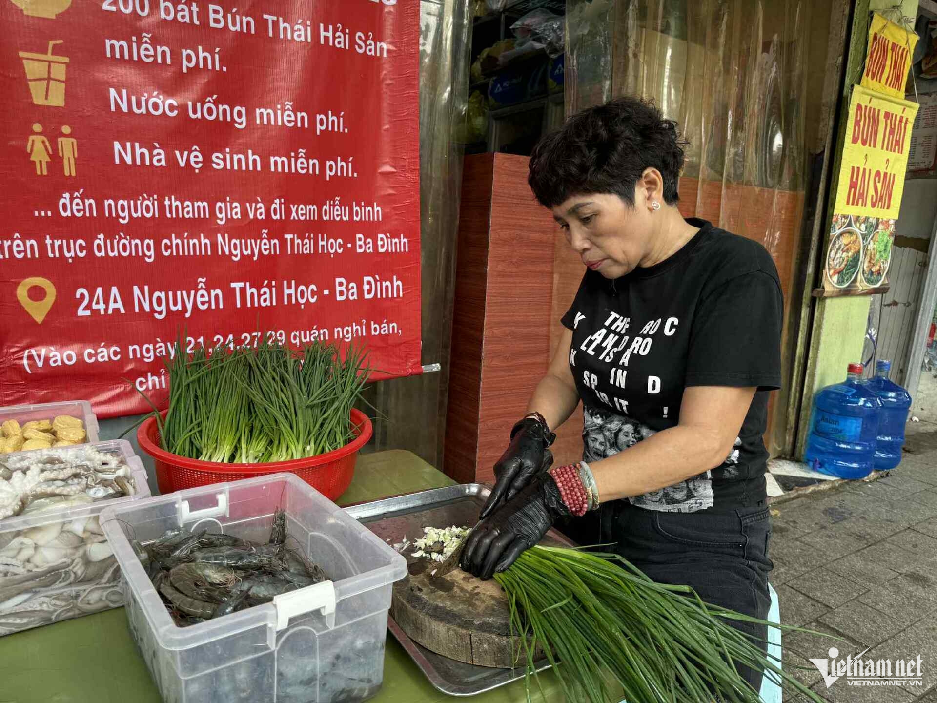 “Today, we closed the restaurant to focus on preparing ingredients. Tonight, we’ll cook 150-200 liters of broth. At 5 a.m. tomorrow, we’ll serve 200 bowls of seafood noodles for free to those waiting for the final parade rehearsal,” Son shared.