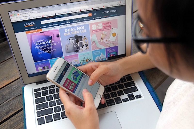 | A local shopper is finding products on an e-commerce site. Photo: Phuong Thu |