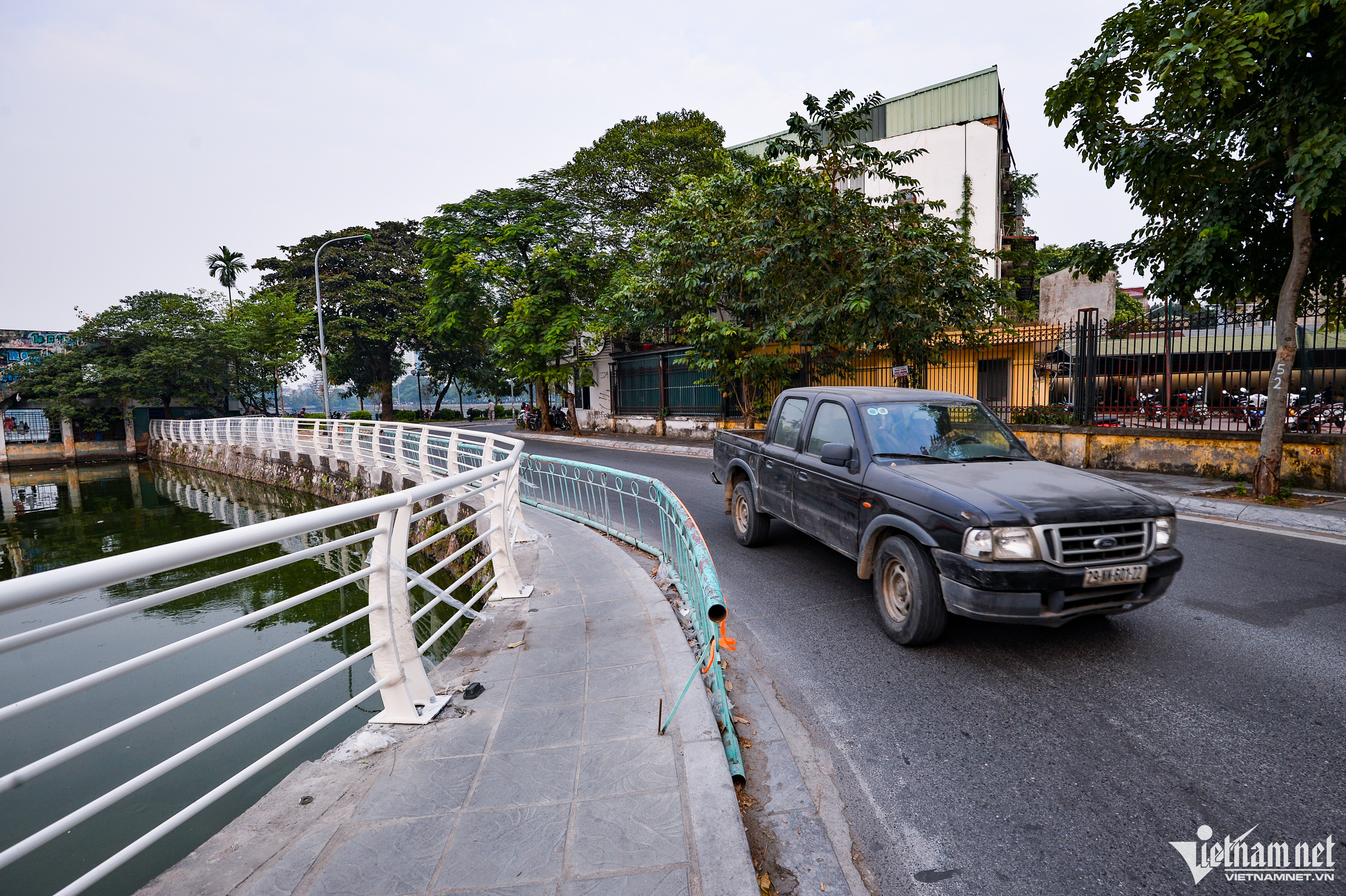 The old railings installed around Hanoi’s largest lake have deteriorated. Earlier, the section of railings from Lac Long Quan to Nguyen Dinh Thi streets were replaced.