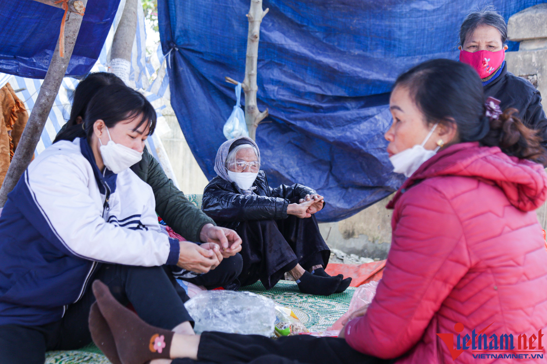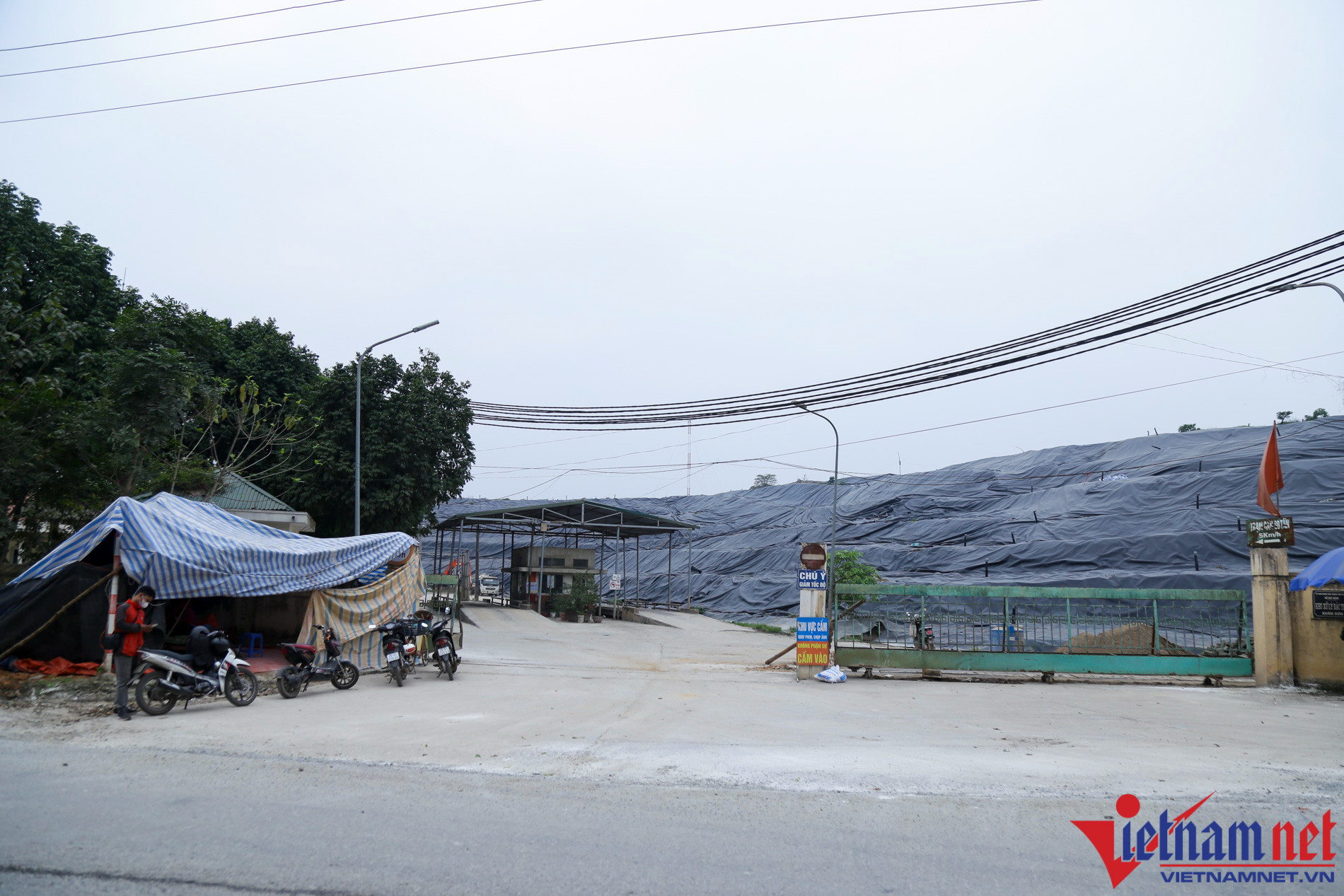 Local residents set up a makeshift tent by the side of a road leading to Xuan Son landfill in Tan Linh Commune, Ba Vi District, to prevent garbage trucks from going in.