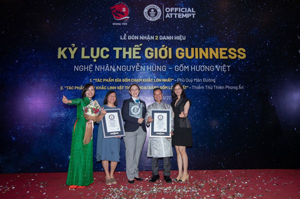 At the Grand Plaza Hotel in Hanoi late last month, the titles of Guinness World Records were awarded to two ceramic artworks by artisan Nguyen Hung and the company he is working for Huong Viet Ceramics. Their names are “Thiem Thu Thien Phong An” or the Money Toad Seal of Heaven and the plate “Phu Quy Man Duong” or the House Full of Wealth and Nobility.