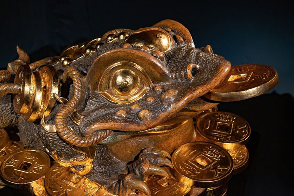 The ceramic artwork of “Thiem Thu Thien Phong An” weighs 1.5 tons and has a length of 1,735 meters, a width of 1.1 meters, and a height of 0.778 meters, depicting a three-legged toad sitting atop a pile of gold coins and bars, with a porcelain yin-yang symbol on its head, a gold coin in its mouth and the Great Bear constellation on its back.