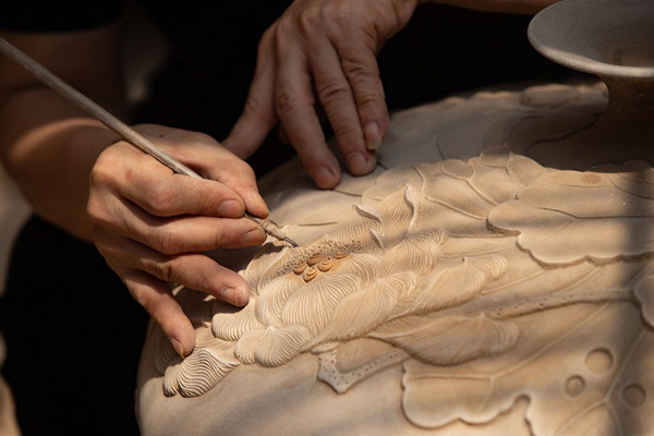 Another remarkable creation of artisan Nguyen Hung is a sculpting technique on ceramics with is far more difficult and requires sophisticated technical requirements. The main material of pottery is clay, which is not as hard as others and may easily crack or distort.