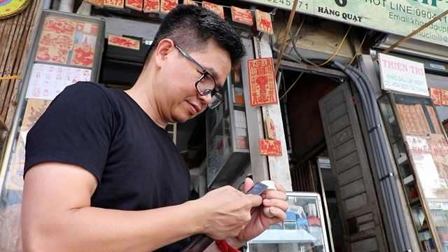 "I have been doing this job for nearly 40 years. It’s a family craft, so I became familiar with it from a young age, around ten years old," Phạm Đức Trí, a stamp carver, told Việt Nam News.