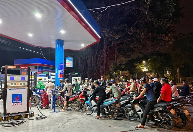 | People queue up at a petrol station in Hoàng Quốc Việt Street, Cầu Giấy District in Hà Nội at 11:50pm on Thursday.—Photo tuoitre.vn |