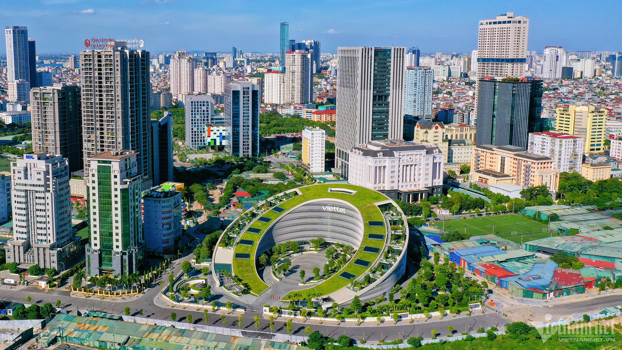 Viettel Group Headquarters, located in Cau Giay new urban area, was designed by Gensler (USA), inaugurated in 2021. This is a world-leading design consulting firm according to the prestigious organization World Architect. The building was inspired by Viettel's logo with the entire roof covered with green. The building can host about 1,000 people.
