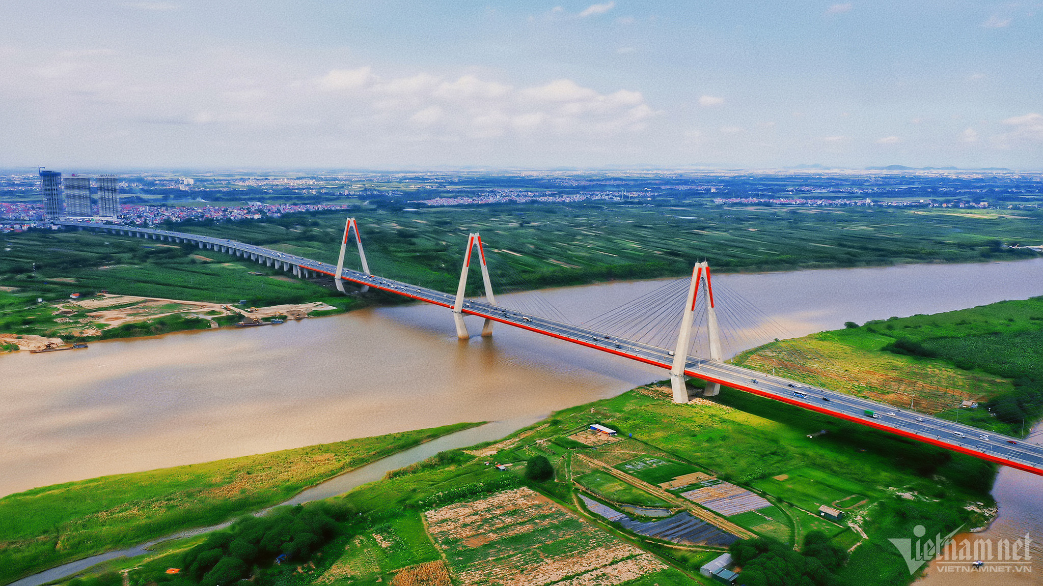 Located on Ring Road 3, the nine-kilometer Nhat Tan bridge (or Vietnam-Japan Friendship bridge) is the longest suspension bridge in Vietnam. It was opened to traffic on January 4, 2015, the same day with two other works - Vo Nguyen Giap Road and Terminal T2 of the Noi Bai International Airport. These are national key projects, with a total investment of nearly 2 billion USD, mainly from ODA loans of the Japanese Government.